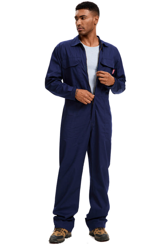 WORK IDEA Men's 100% Cotton Workwear. It features long sleeves, durable twill fabric, multiple pockets for storage, and is suitable for both casual and work scenarios.