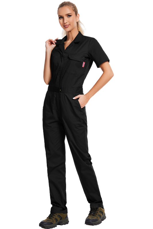 WORK IDEA Women's Short Sleeve Coverall Lightweight Snap-Front Cotton Work Jumpsuit