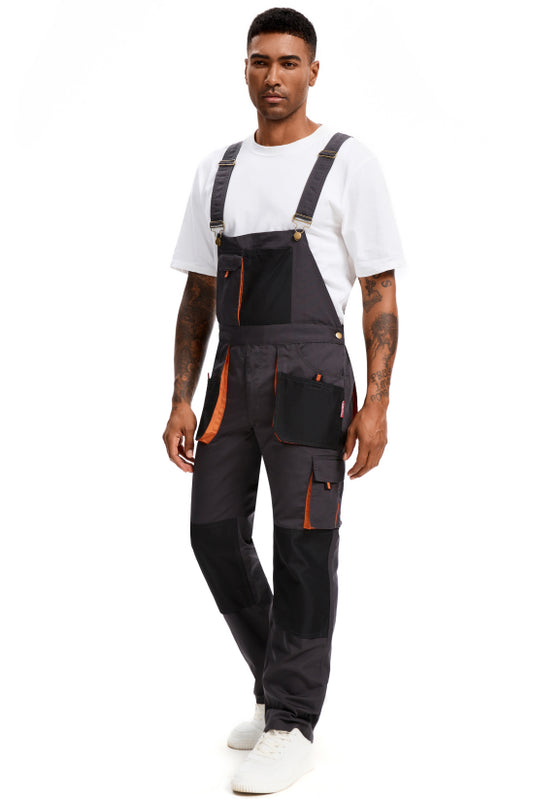WORK IDEA Men's Bib Overalls Sturdy Canvas Work Overalls with Knee Pad Pockets