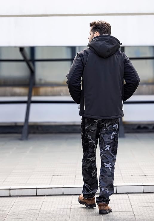 Softshell Jacket Men's Water-Repellent Breathable 2-in-1 Vest Removable Sleeves + Hood Rain Jacket Winter Work Jacket Outdoor Hiking